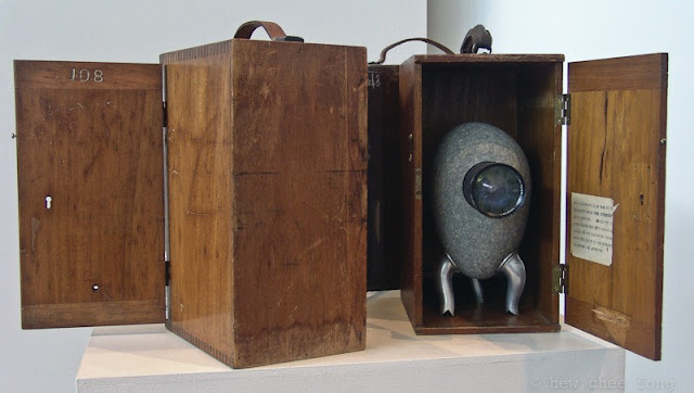 medium: natural granite boulders, vintage microscope cases fittings and lens